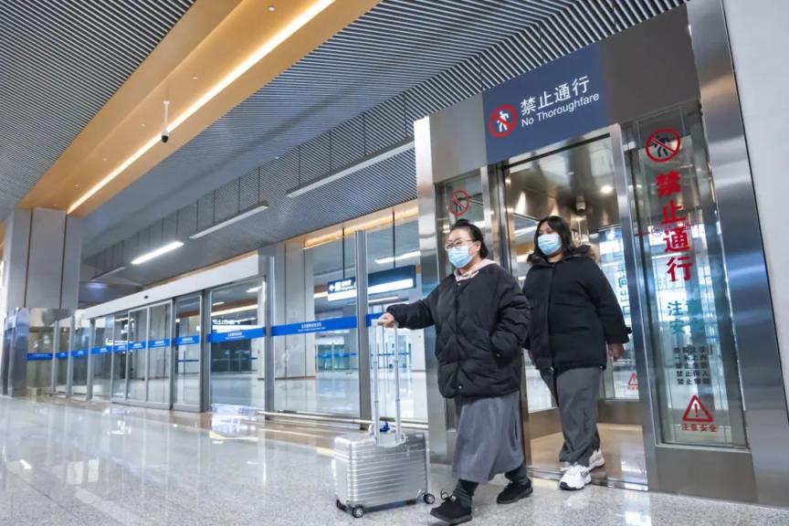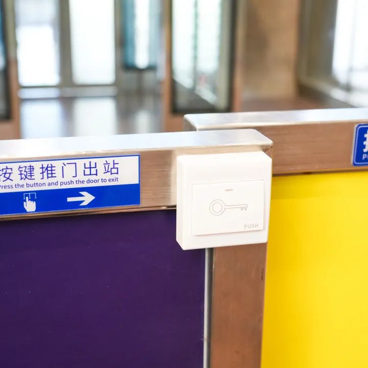 与两侧围挡齐平的半高平开电磁门既美观又通透,旅客只需先按下一旁的按钮、再轻轻推开门,即可出站。